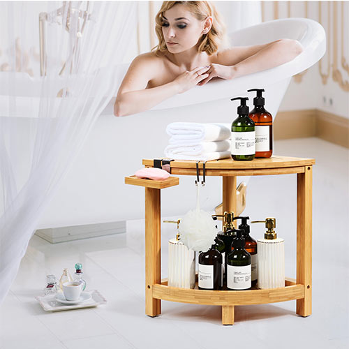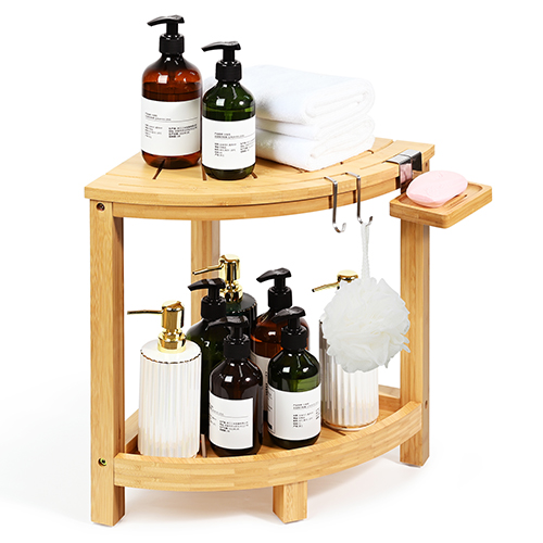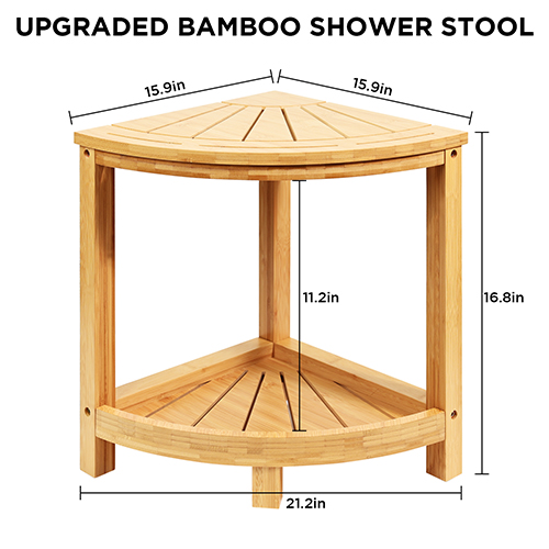 Ollieroo shower shelf corner is made from 100% bamboo, which is green, non-toxic and renewable. All surfaces are meticulously varnished for a water-resistant finish. The slatted top and bottom shelf of the foot rest facilitates quick drainage and ventilation, making it less susceptible to mold and mildew in a humid bathroom. This shower organizer corner is very easy to clean. Simply wipe it down with a damp cloth or mild detergent to keep it hygienic.