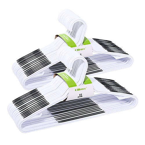 The plastic hangers set of 30 are made of strong and durable plastic that will last for many years; Each plastic hanger is built to withstand heavy clothing; very reliable.